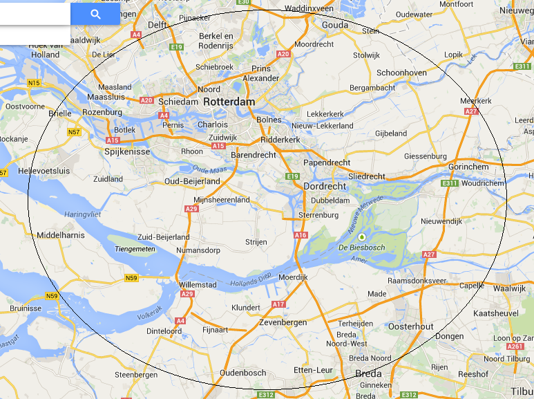 Wij bezorgen tot max 40 km vanuit Klaaswaal. Onderstaande afbeelding geeft u een indicatie tot waar wij ongeveer bezorgen